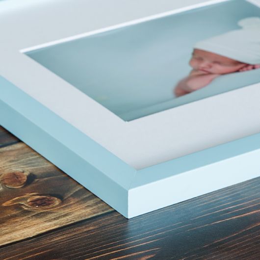 Le cadre Minimal est disponible en divers formats et en quatre couleurs: noir, blanc, bleu et rose.