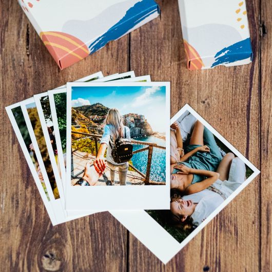Des photos avec un effet vintage grâce au format du papier et au bord blanc. La boîte élégante, dans laquelle les tirages sont inclus, fait la différence lors de la présentation du produit.